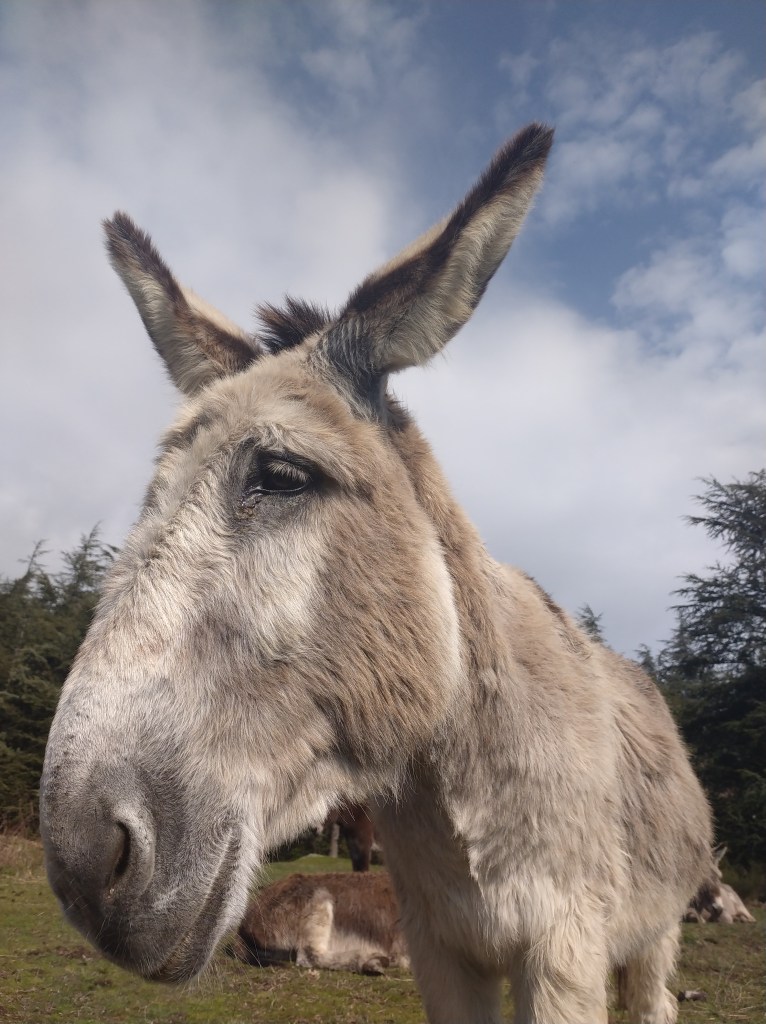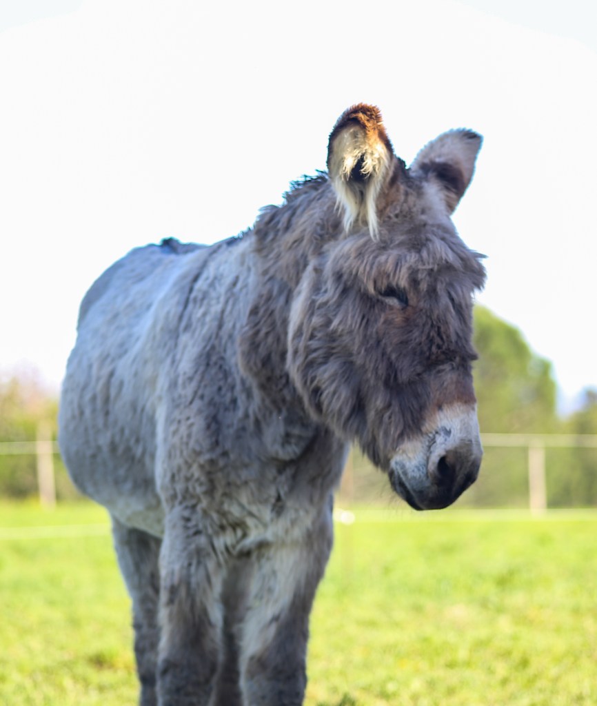 Gabian a 9 ans. C’est l’âne de tête, passe-partout, rapide et courageux. Il est facile et toujours motivé pour une balade ! Surtout si elle passe par un coin d’herbe tendre...